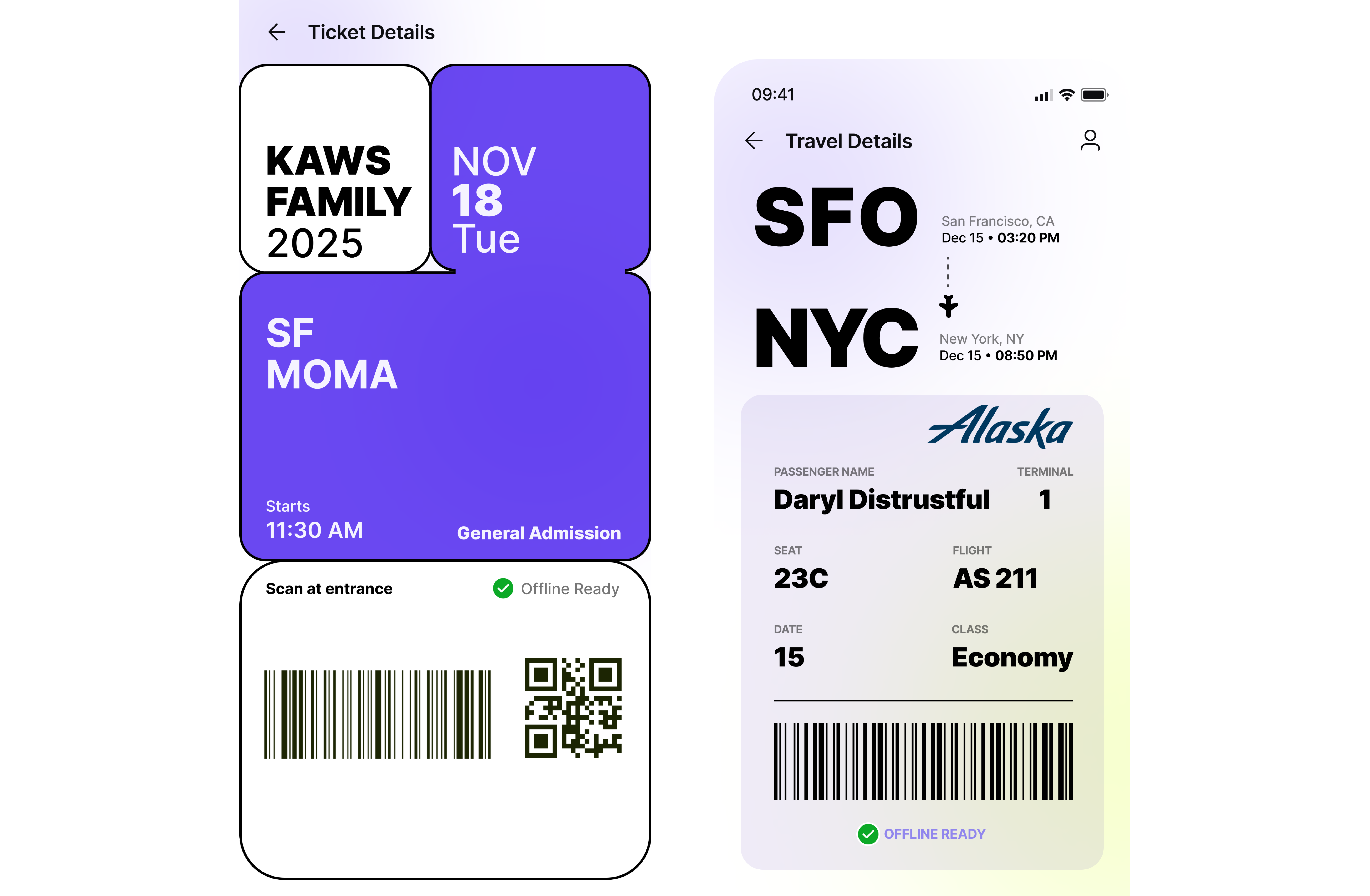 At entry points, users need immediate access to scannable tickets with minimal interaction.