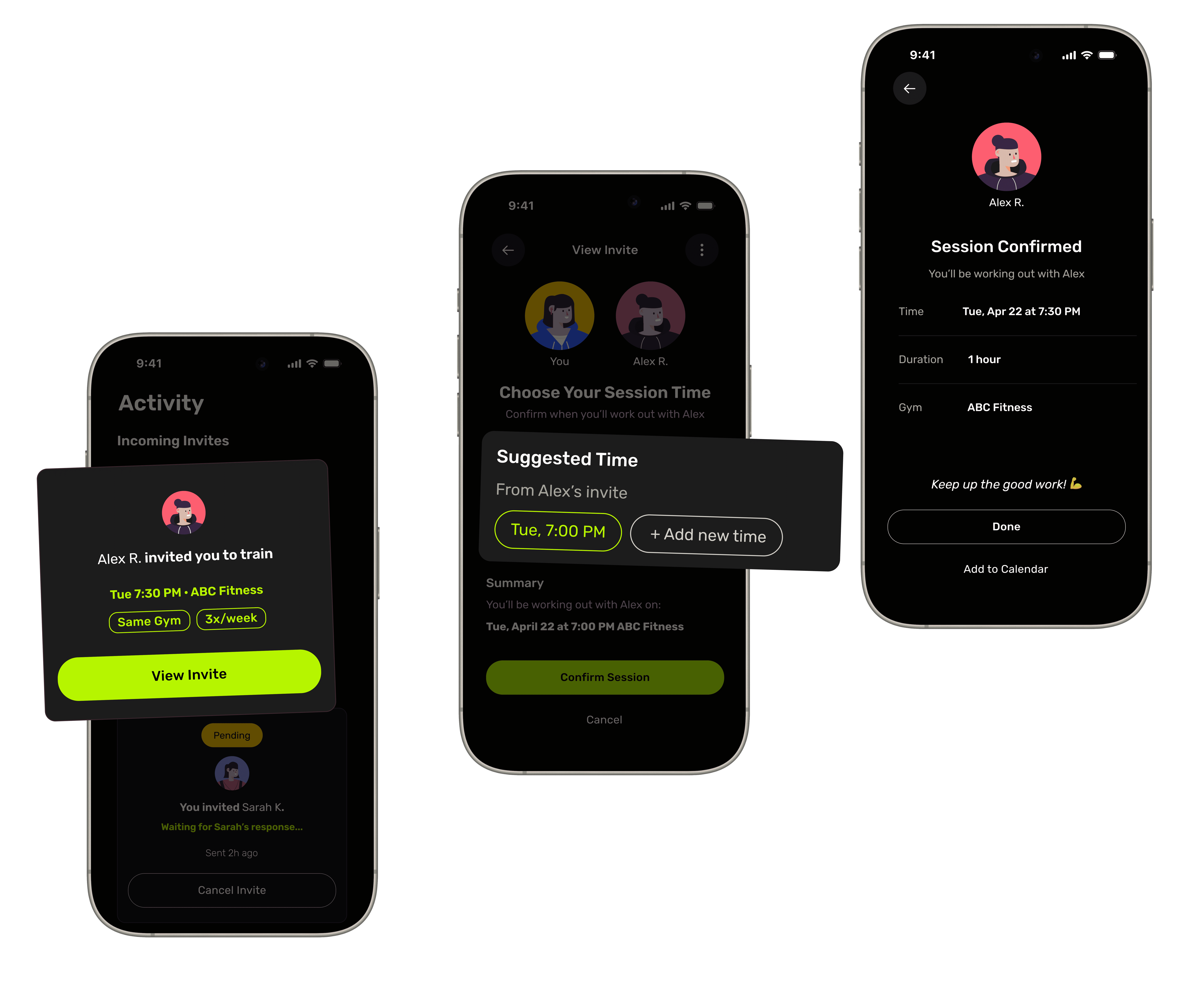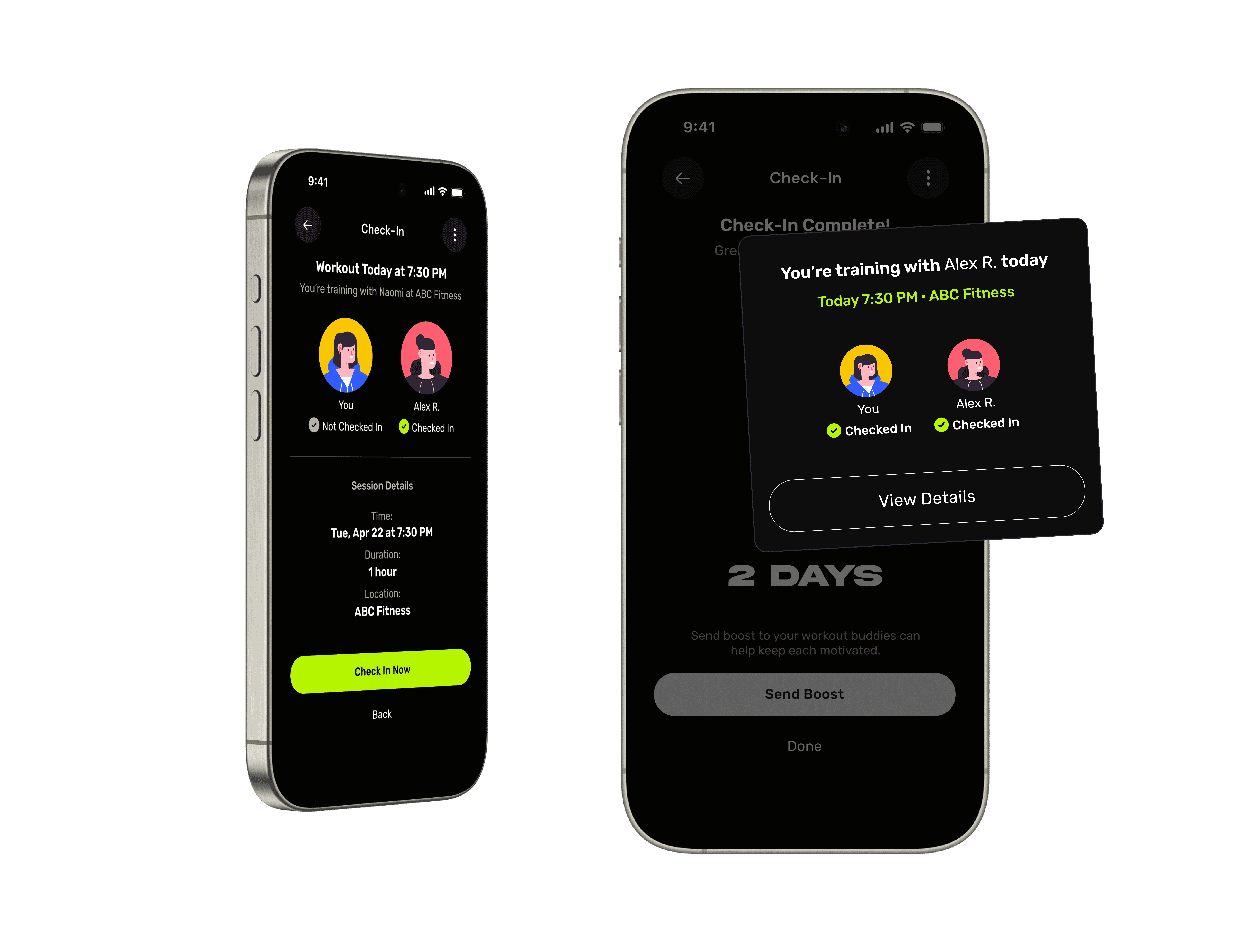 Even when a session is scheduled, commitment often weakens as the workout approaches. Without an active reminder of shared responsibility, users may disengage or simply not show up.